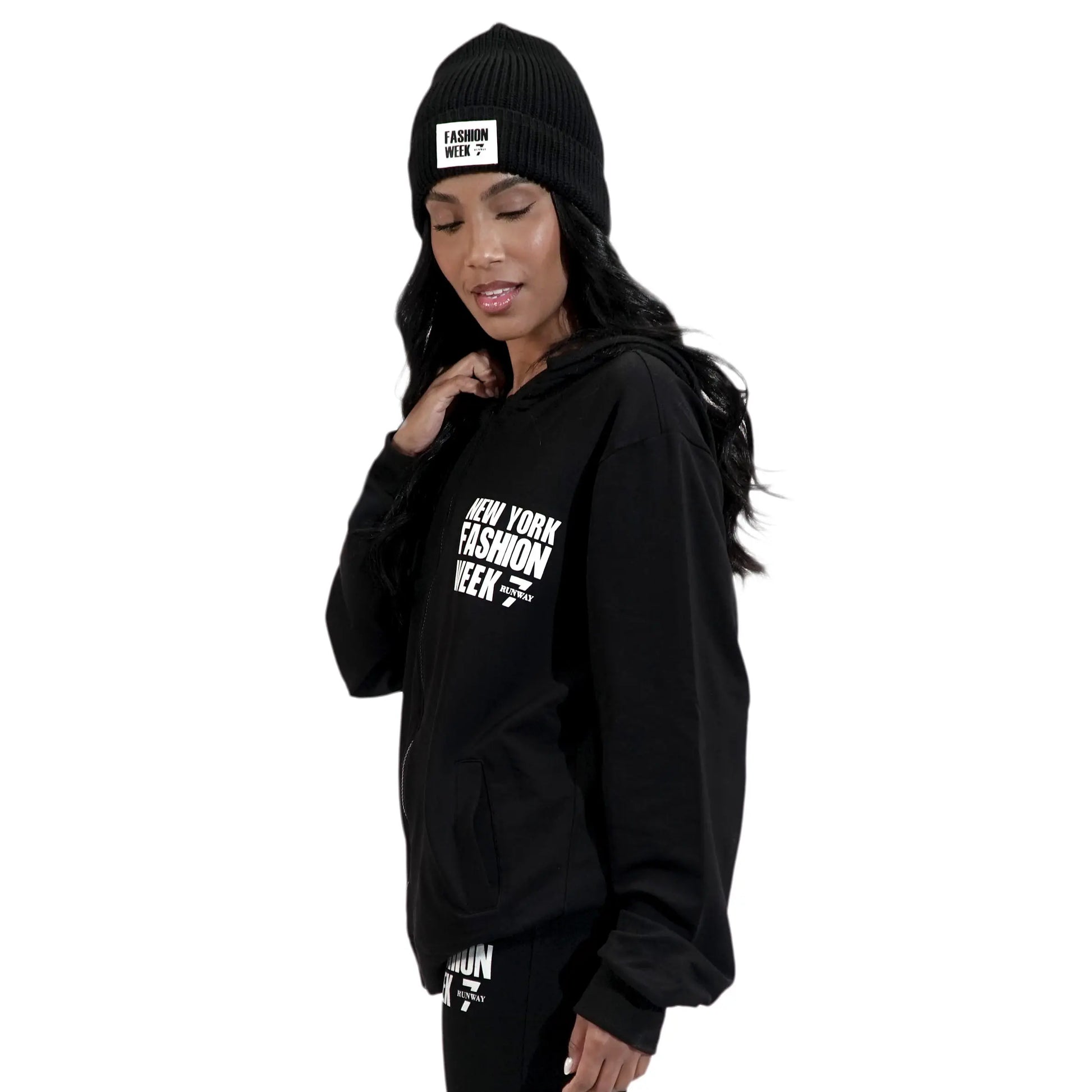 NYFW BLACK ZIP UP HODDIE